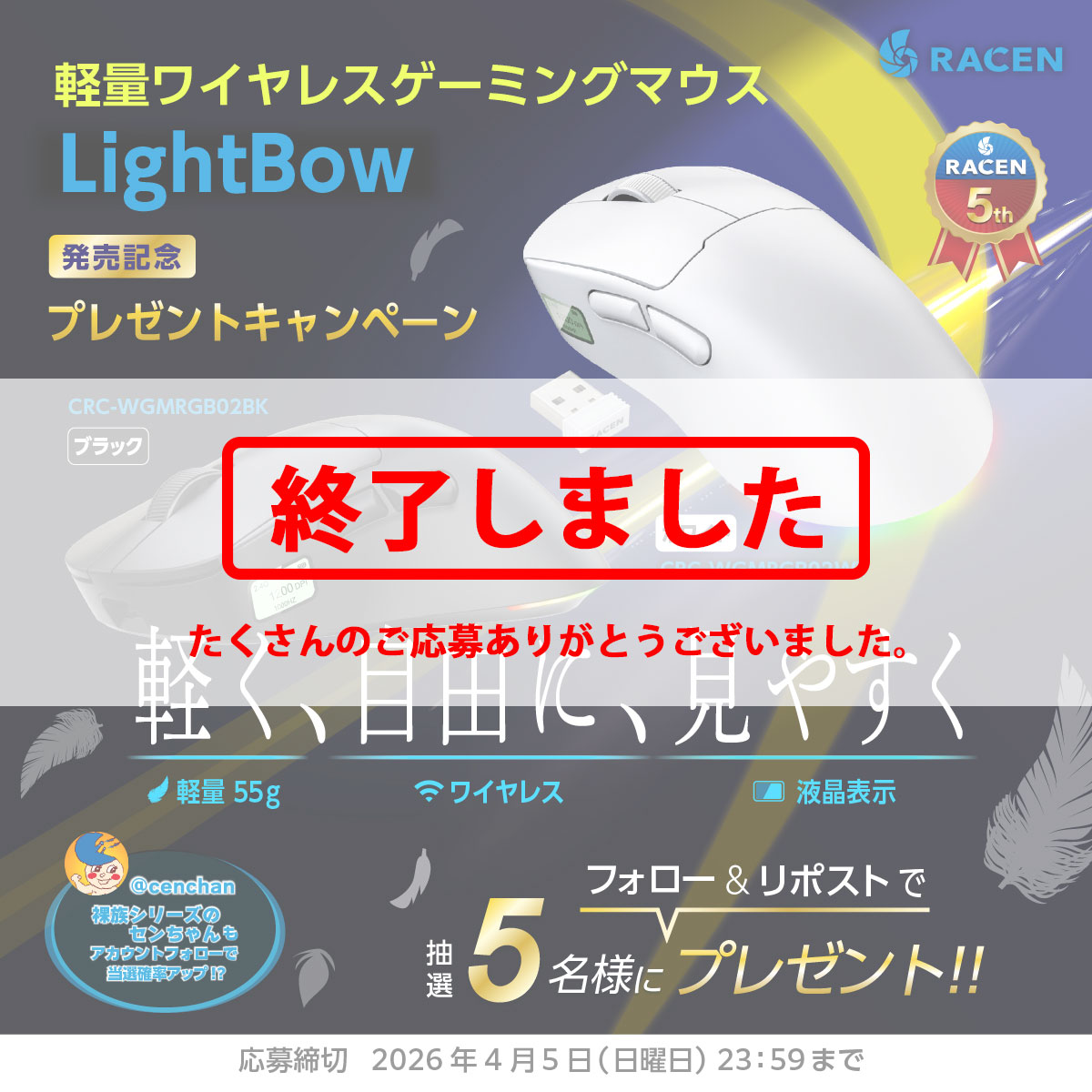 - “軽量×液晶付き”「RACEN 軽量ワイヤレスゲーミングマウス LightBow」発売