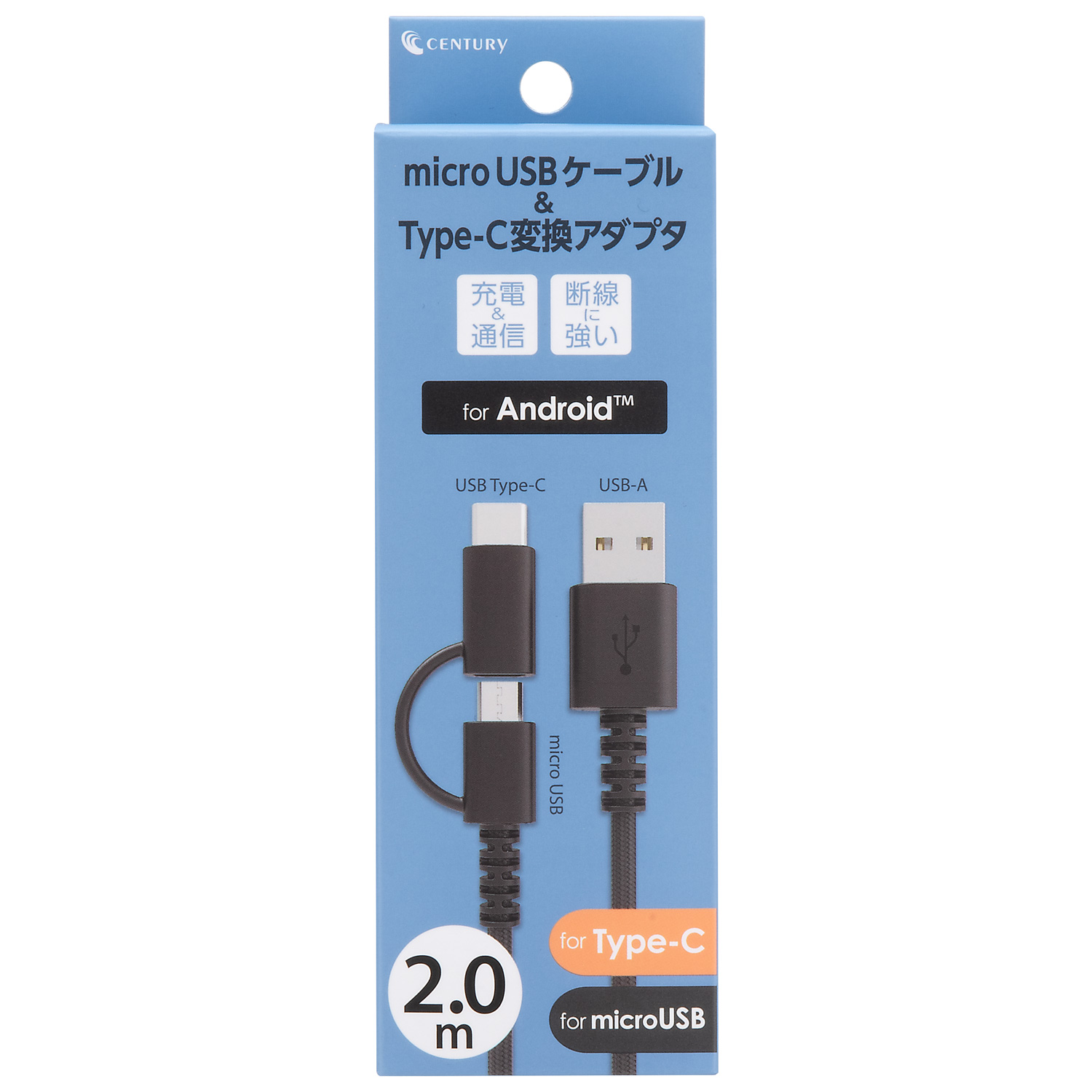 - MicroUSBタフケーブル 2m & Type-C変換アダプター (T2CM-JD24)