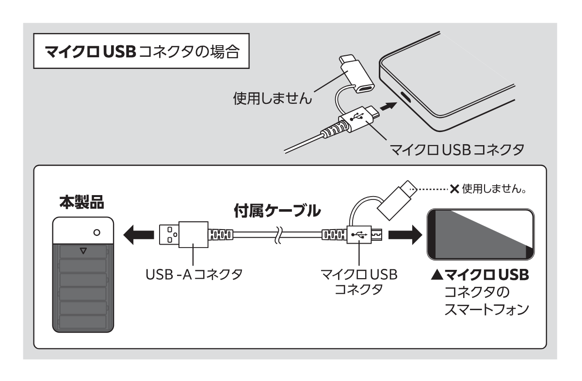 ※MicroUSBコネクタのスマートフォンと、USB Type-Cコネクタのスマートフォンを同時充電することはできません。