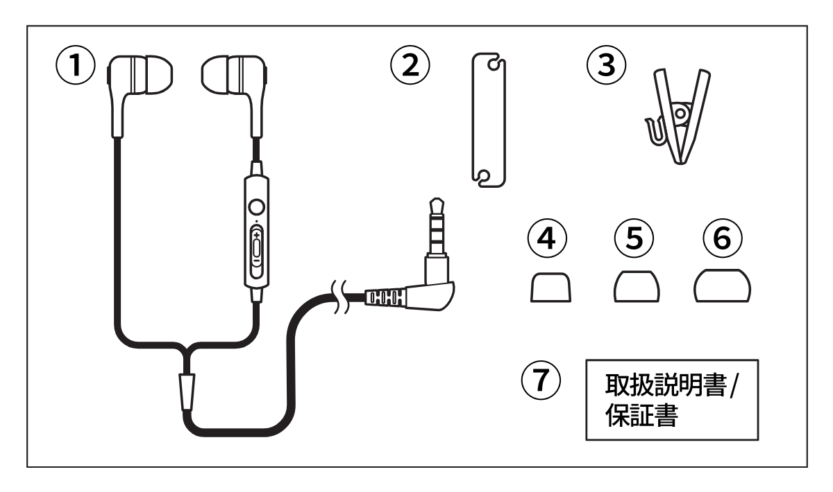 ④⑤⑥イヤーピース × 3サイズ(S・M・L) ※Mサイズは本体に装着済