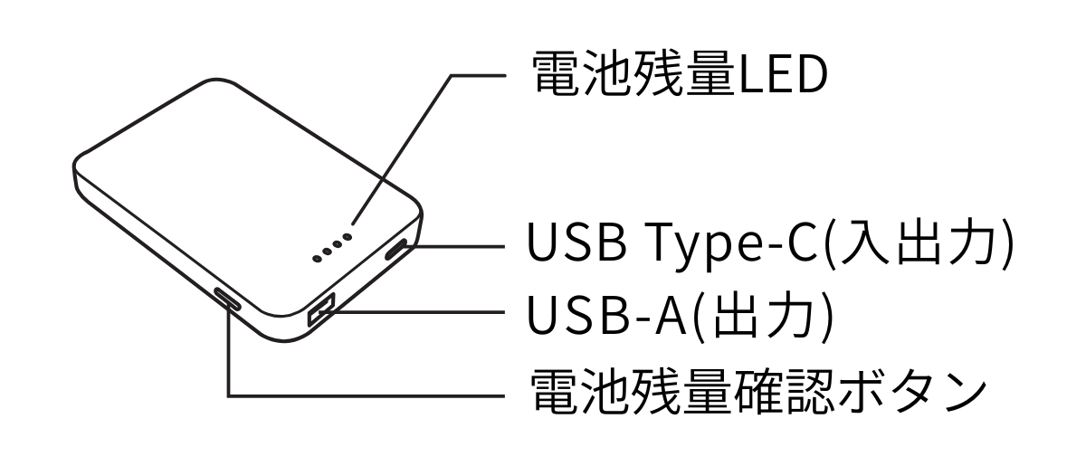 | 定格出力 | USB-Aのみ使用時:5V 2.4A USB Type-Cのみ使用時:5V 2.4A 2ポート同時使用時:5V 2.4A |