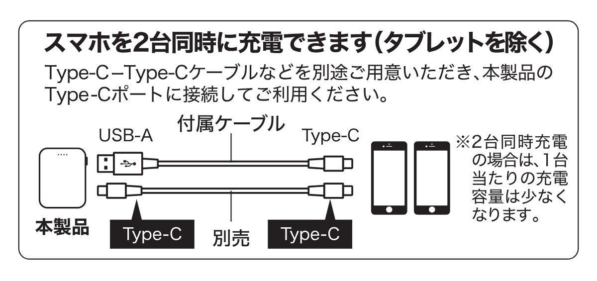 ※2台同時に充電する場合、1台あたりの充電容量は少なくなります。