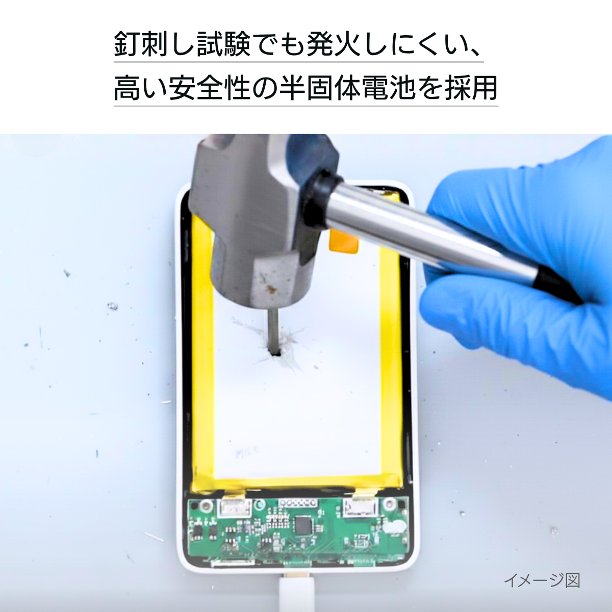 釘刺し試験でも発火しにくい半固体電池だから、
