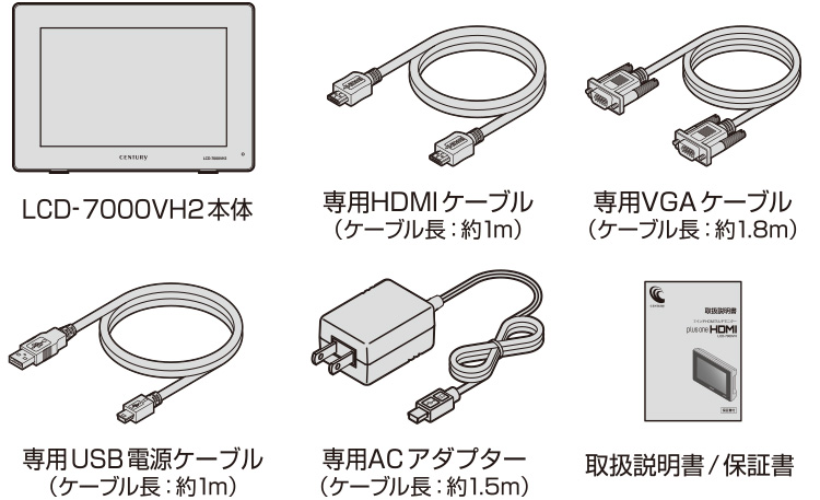 ・HDMIまたはアナログVGA(D-sub 15pin)出力ポートを搭載したPC ・HDMI出力ポートを搭載したAV機器 ※USB接続で電力供給する場合はUSBポートが必要です。 |