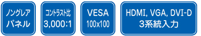 - HDMI、VGA、DVI-D 充実の3系統入力(HDCP非対応)
