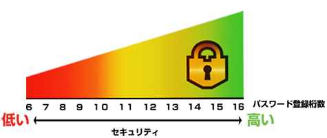 設定したパスワードの桁数によりセキュリティレベルを任意にコントロール。