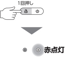 ■1〜7回目間違ったパスワードを入力し、解除ボタンを押す。↓ 「ピピピッ」と鳴り、ロックランプと解除ランプが交互に点滅します。 |