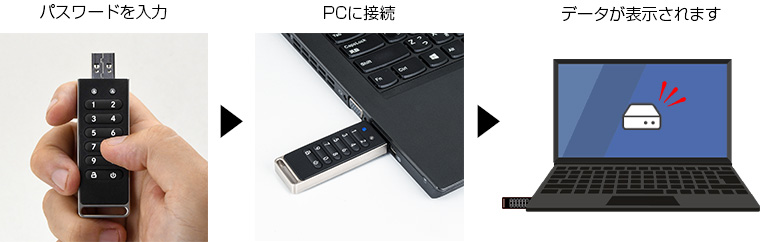 PCに接続する前にパスワードを入力してロック解除を行わない限り、保護されたデータにアクセスすることはできません。