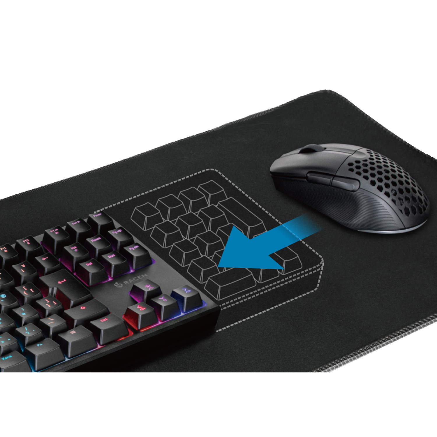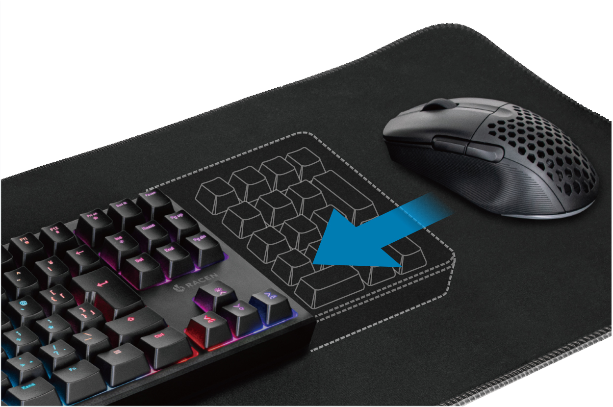 キースイッチ下の緩衝材が打鍵音や振動を抑え、長時間のプレイでも安定した操作感を提供します。