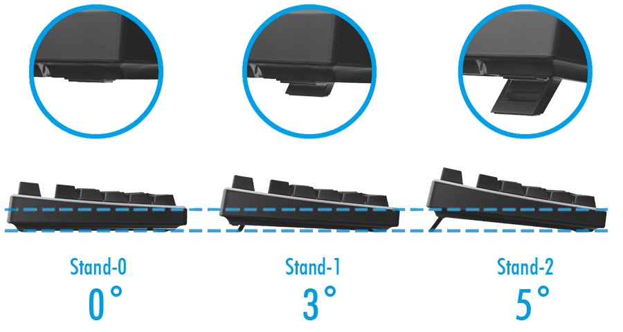3段階で調整可能なキーボード傾斜。