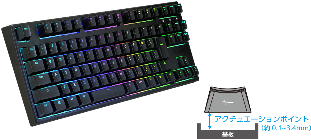 アクチュエーションポイントをキーごとに調節可能。実際の入力による直感的な設定ができるクリックトリガー機能も搭載。
