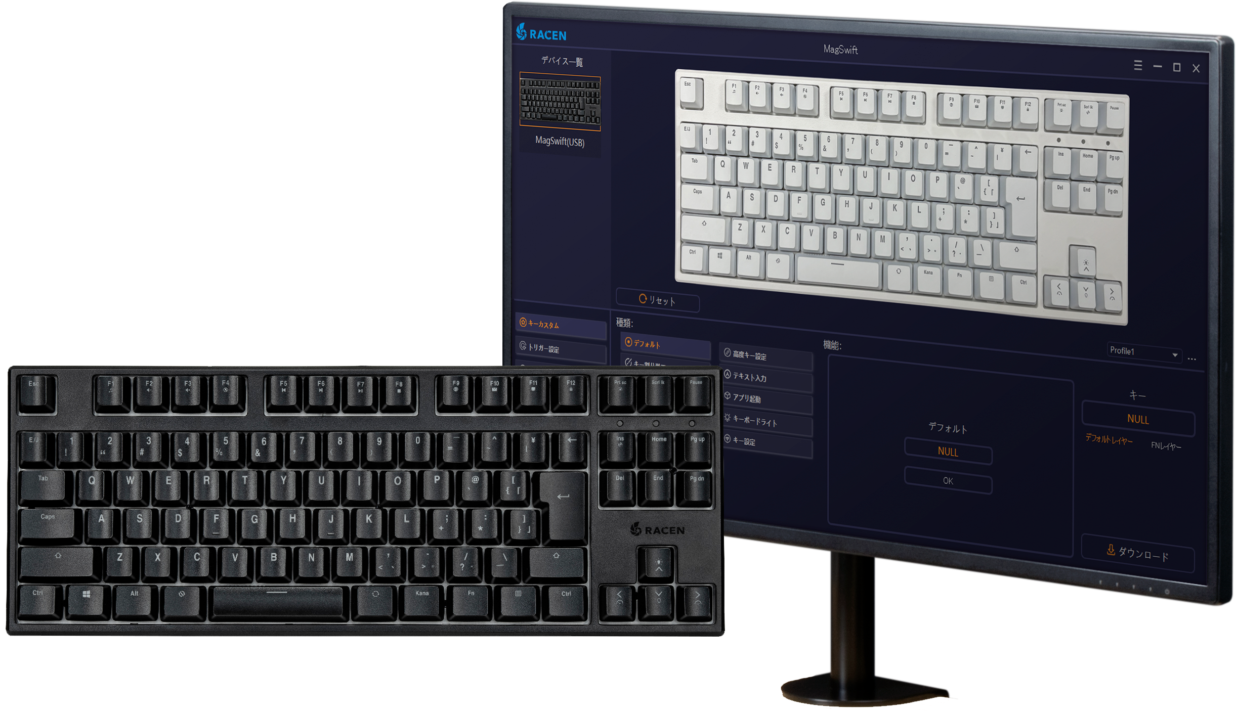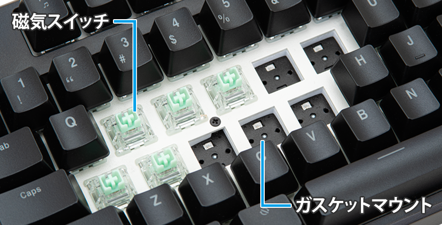 物理的な接点のない磁気式キースイッチを採用し、スムーズな押し込みで軽やかなタイピング感。
