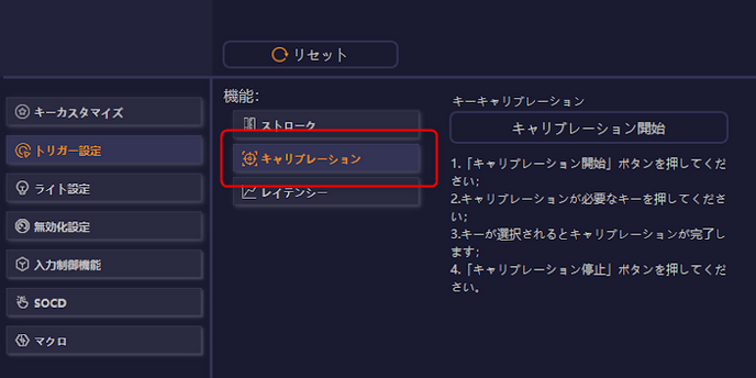 - 次の画面で、キャリブレーションを選び、キャリブレーションを行います。