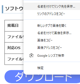 - ダウンロードの上で 右クリックし、「名前を付けてリンク先を保存...」を左クリックします。