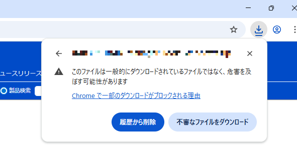 Chromeのセキュリティ機能により、ファイルのダウンロードができない場合がございます。