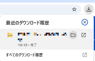 - これで保存ができました。フォルダーのマークを左クリックすると、ダウンロードしたファイルのあるフォルダが開きます。